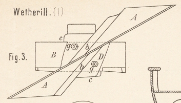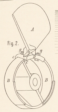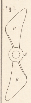 An der Nabe A sind die Flügel BB, statt wie gebräuchlich in rechtwinkeliger Richtung zur Mittellinie der