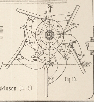 direkt auf der Welle sitzen und demzufolge das Wasser bei D frei zwischen den Flügeln und der Welle hindurchlaufen kann. Zweck des