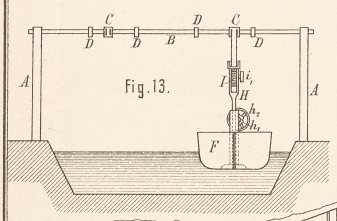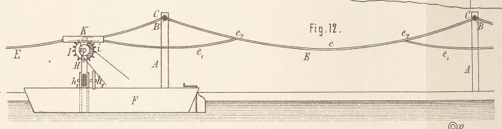 dem Fluſsgrunde verlegten, dünnen Drahtseile h in