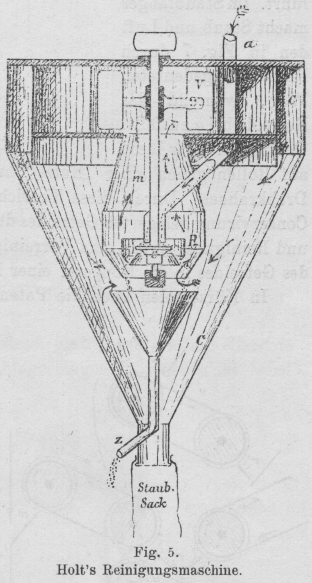 führende Rohr, C der Cyclon. Das gereinigte Getreide fällt bei z aus, der Staub gleitet in den Staubsack.
