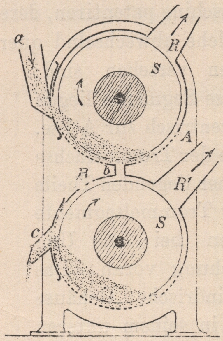 Getreides erfolgt am zweiten Ende der Cylinder. Der Schälstaub, welcher aus den