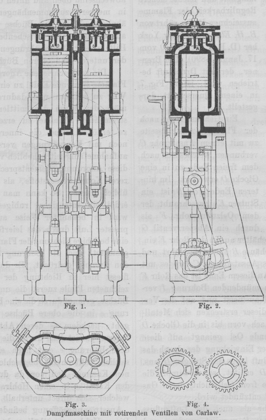Dampfmaschine mit rotirenden Ventilen von Carlaw.