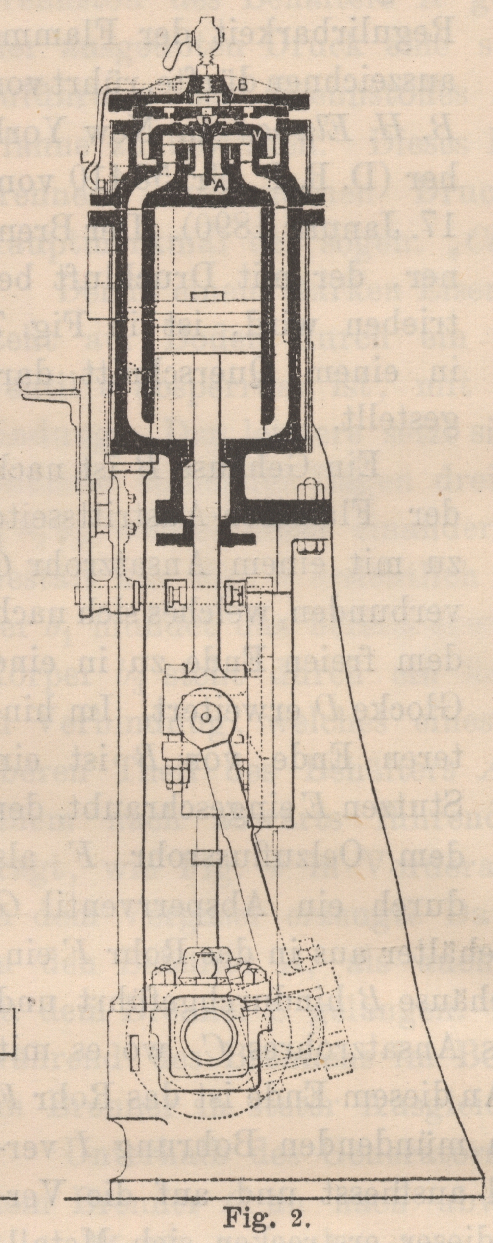 Ventil V übertragen und die Fläche der Scheibe B ist so bemessen, dass ein geringer Ueberdruck auf das