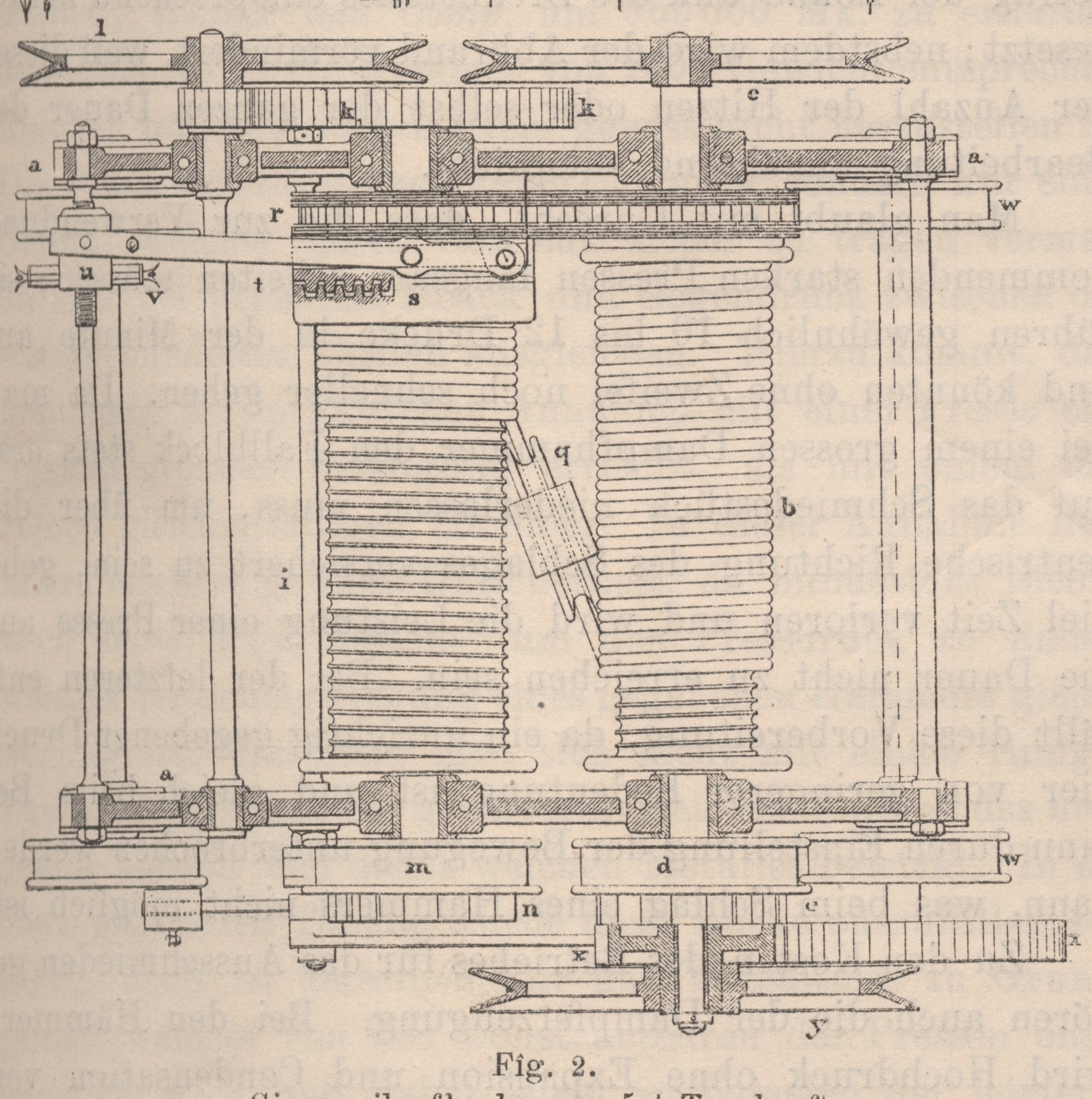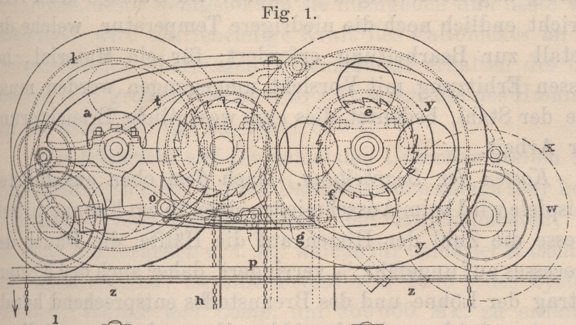 Stirnradpaares k durch die Kettenscheibe l betrieben wird und ein ähnliches, jedoch entgegen