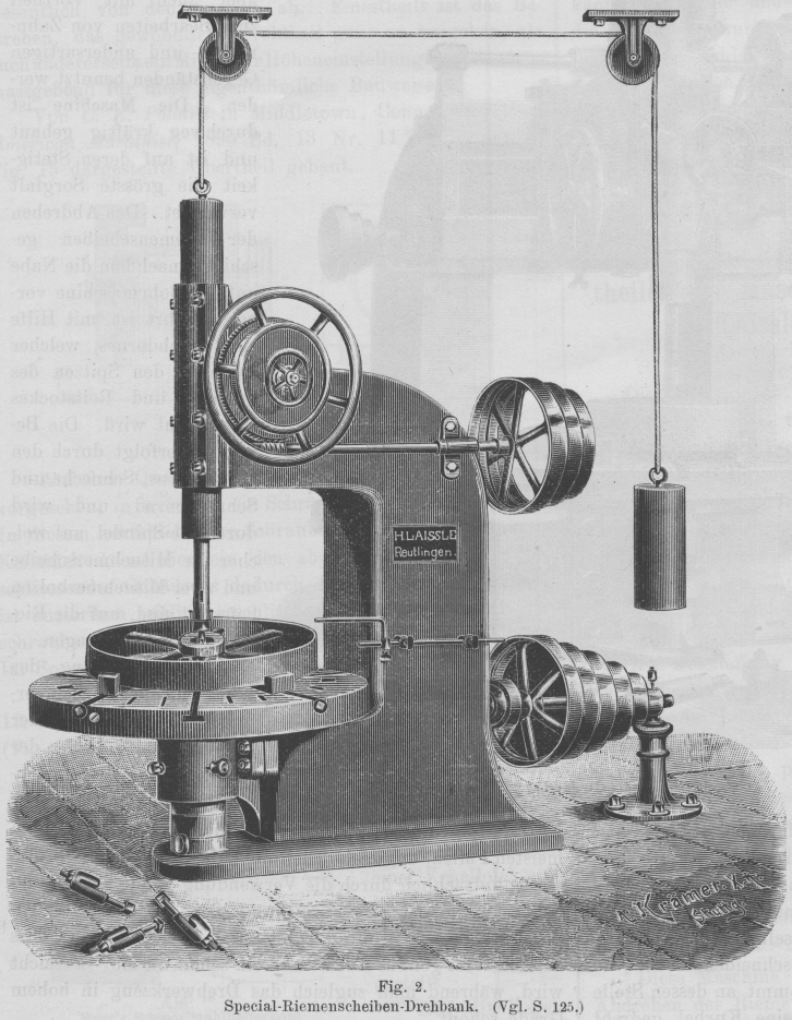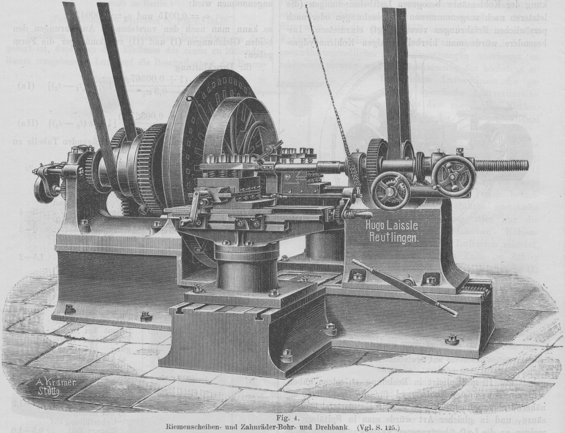 Riemenscheiben-Bohr- und Drehbank (Fig. 4 S. 128).