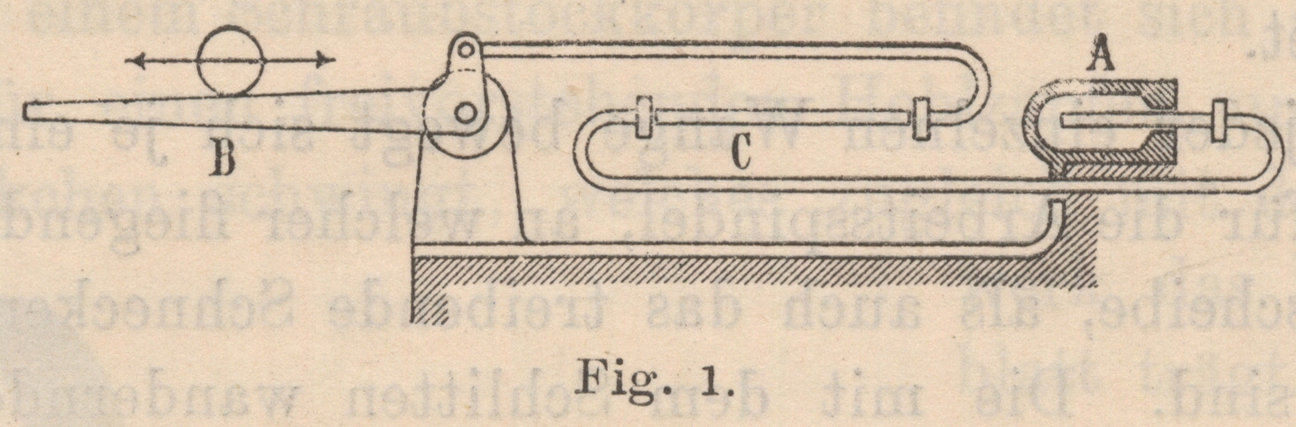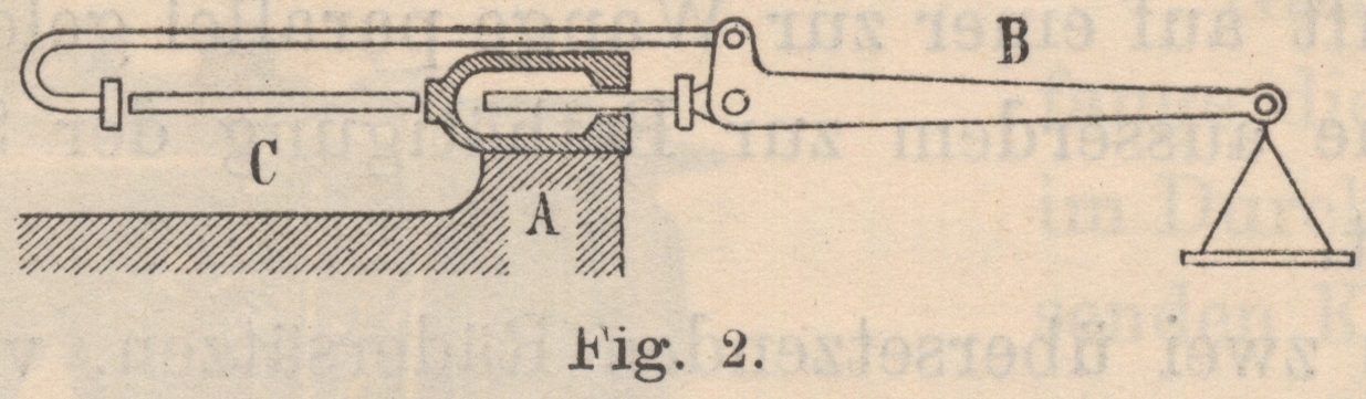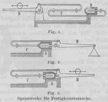 1 ersichtliche räumliche Trennung des Spannwerkes A und der Wage B, indem der Versuchsstab C zwischen beide eingelegt wird. Hierbei ist das feste