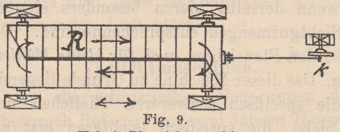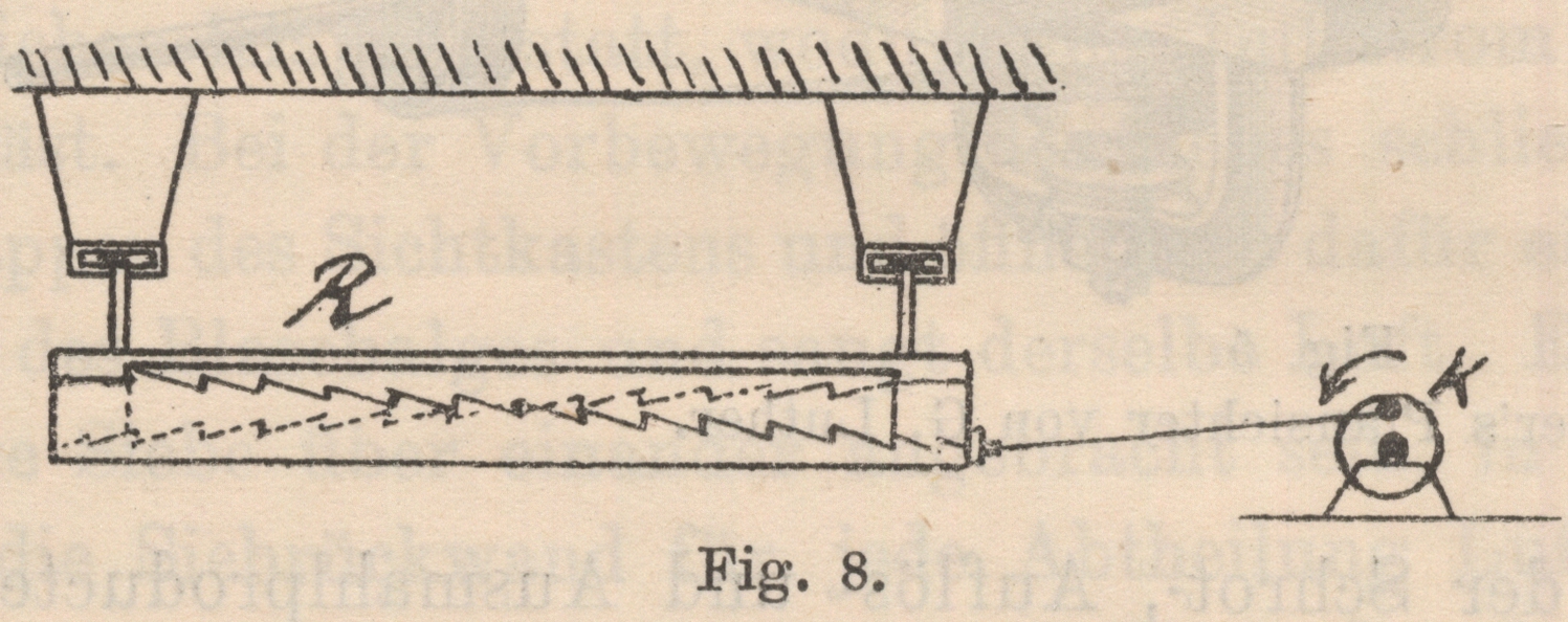 12 angedeutete Mechanismus, bestehend aus der Kurbel K, dem Riemen r, den