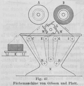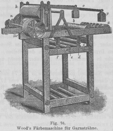 das englische Patent Nr. 6427 A. D. 1886 geschützten und in Fig. 73 in einer Ausführungsform wiedergegebenen Maschine zum Färben von