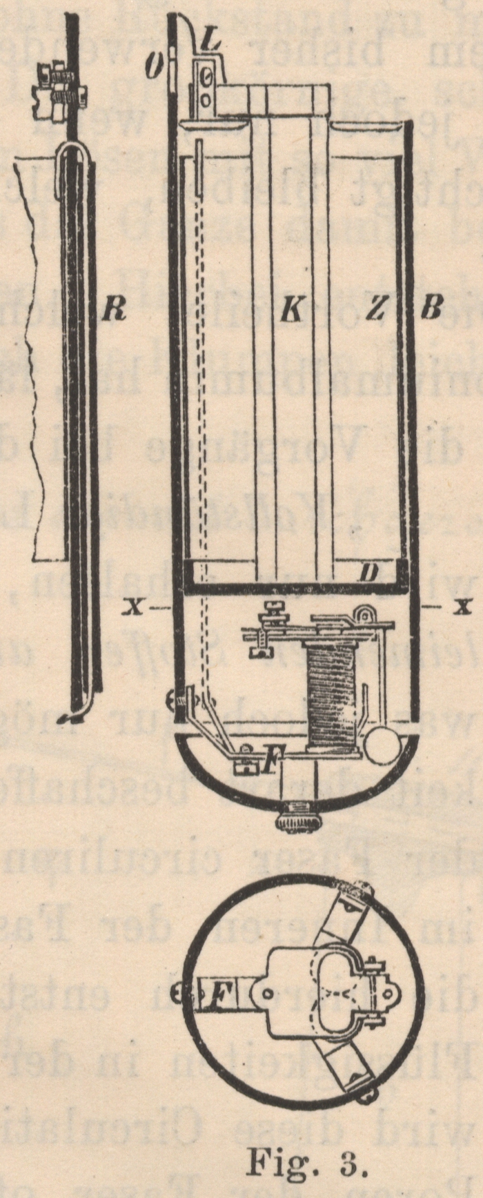 desselben senkrecht herab zur Glocke und ist durch ein Hartgummirohr geschützt. Ein