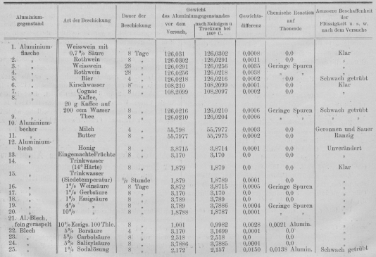 Aluminiumgefässen in Berührung gewesenen Substanzen zu beobachten waren, geschweige