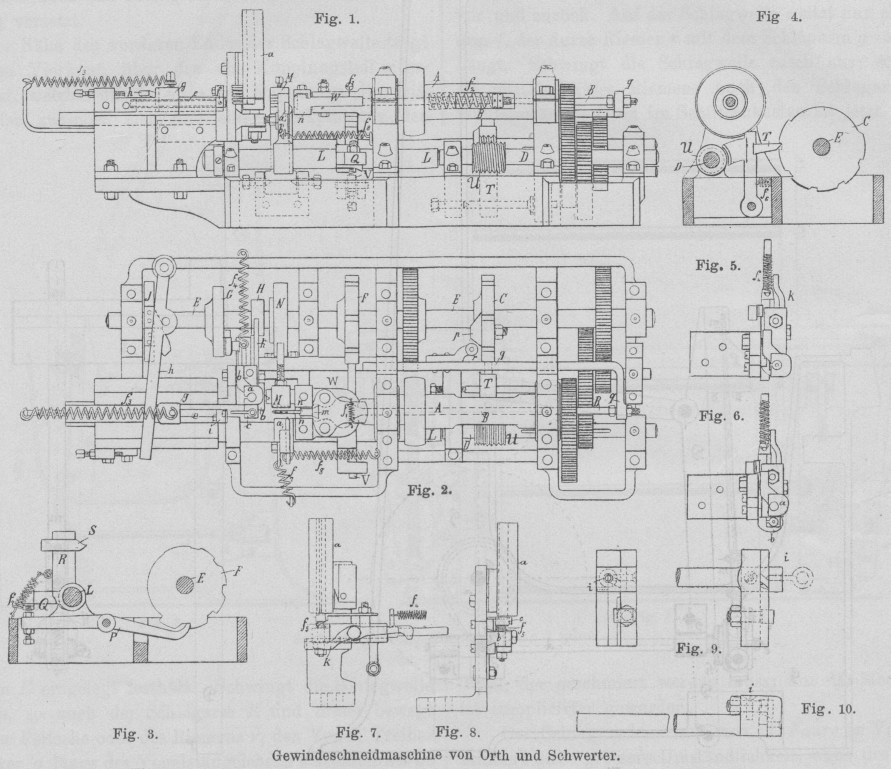 An diesem Rundstabe L sitzt der Hebelhalter R mit dem Gewindschneidzahne S.