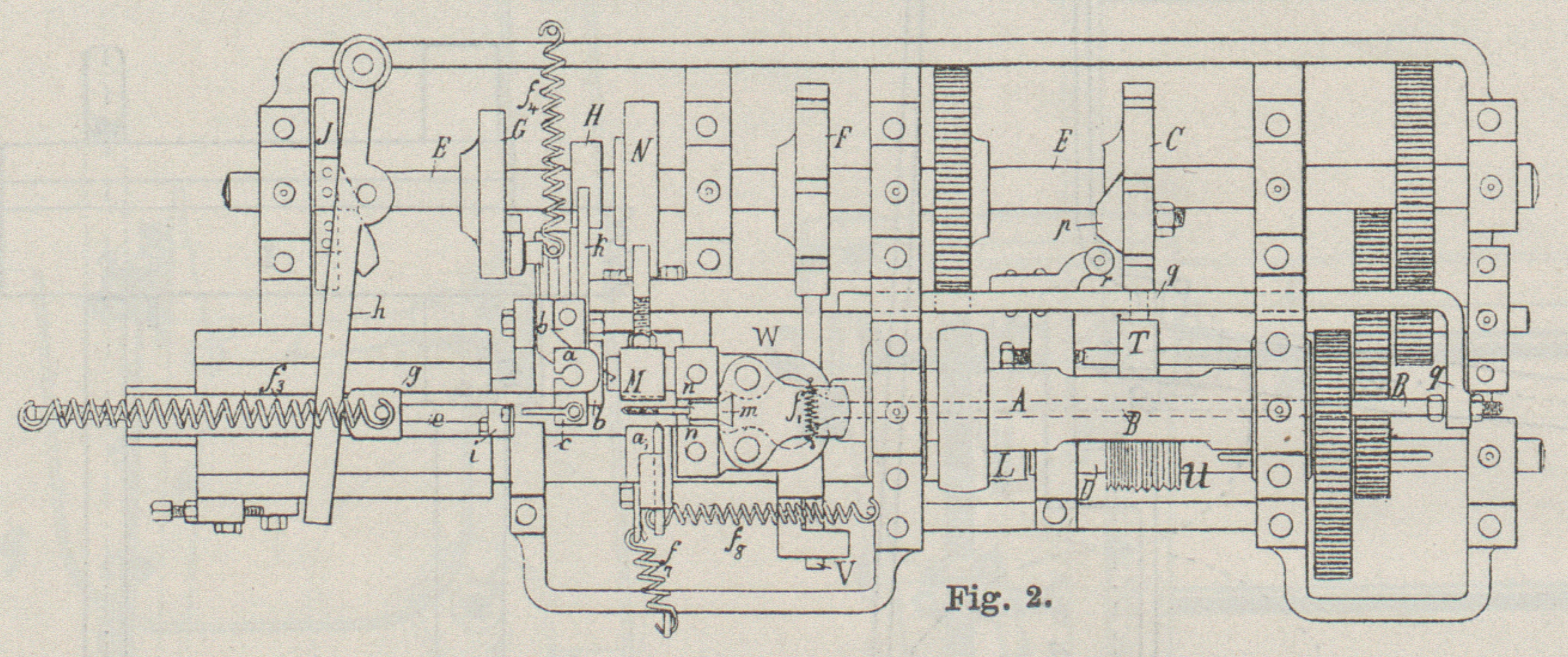 Von der Hauptspindel A wird ferner mittels Räderwerke