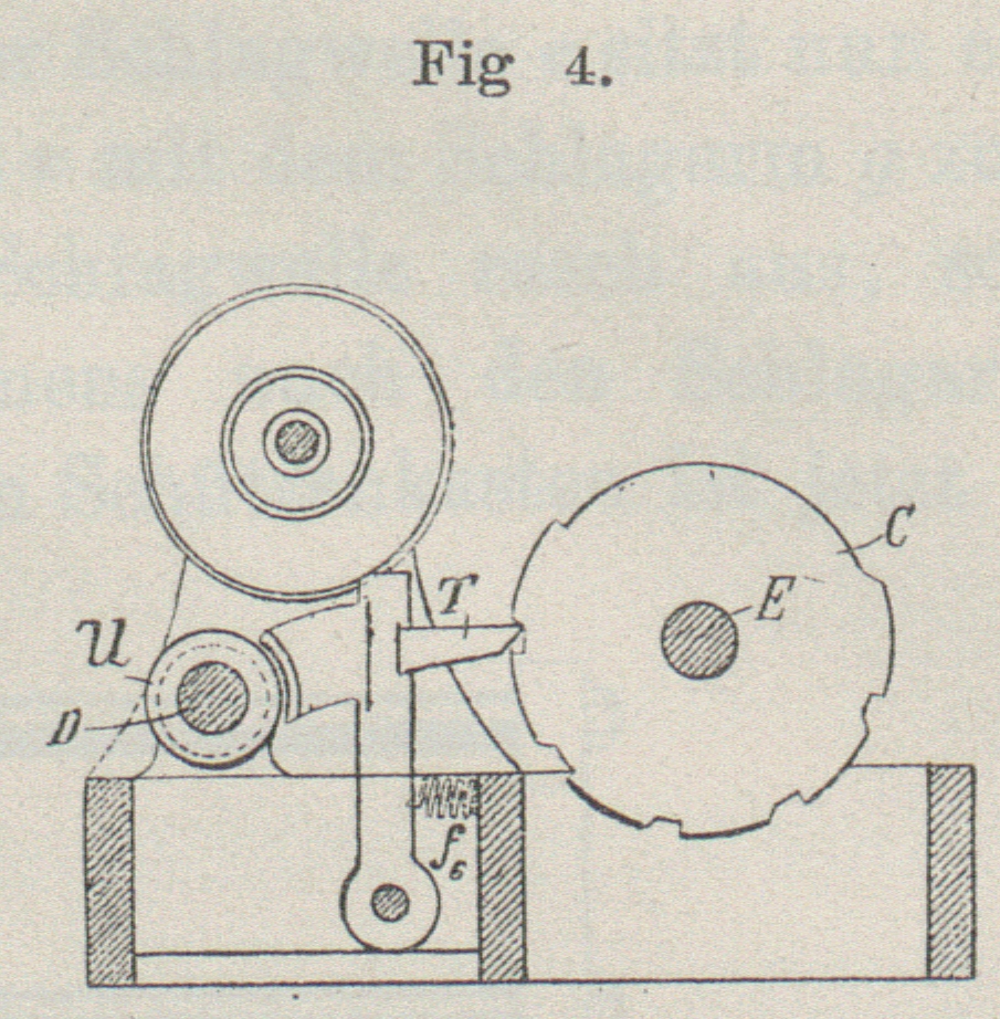 Dagegen haben die centrisch angeordneten Zähne der Scheibe C (Fig. 4) den