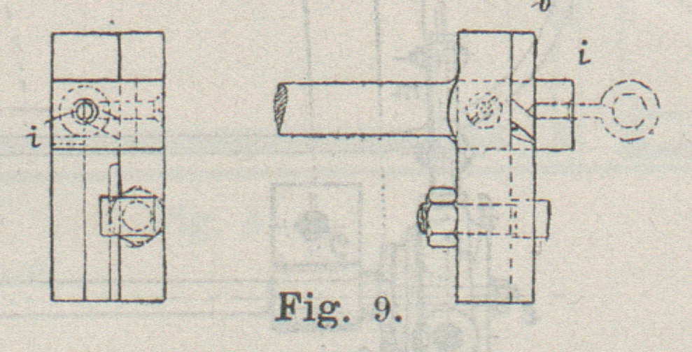 begreiflich, dass bei gleichmässiger Verschiebung zweier Keilbolzen E der zwischenliegende Stahlhalter C mehr oder weniger um seinen Doppelzapfen C1 schwingt, die