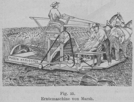 Bindemaschinen muss der von C. W. und W. W. Marsh im J. 1858 patentirte Marsh'sche harvester (Erntemaschine) angesehen werden,
