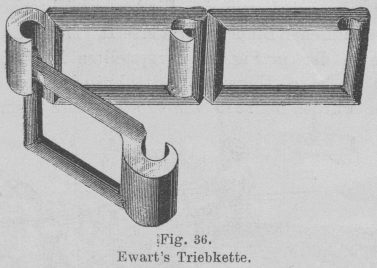 Textabbildung Bd. 283, S. 214Fig. 36.Ewart's Triebkette. In Verbindung mit den Bindemaschinen kann auch der Name Ewart nicht unerwähnt bleiben, indem William D. Ewart der Erfinder einer Triebkette ist,