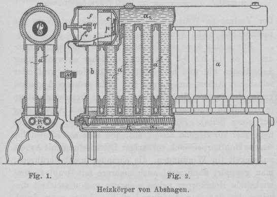 construirten Heizkörpers gedacht, welcher in den Fig. 1 und 2 theils im Schnitt,