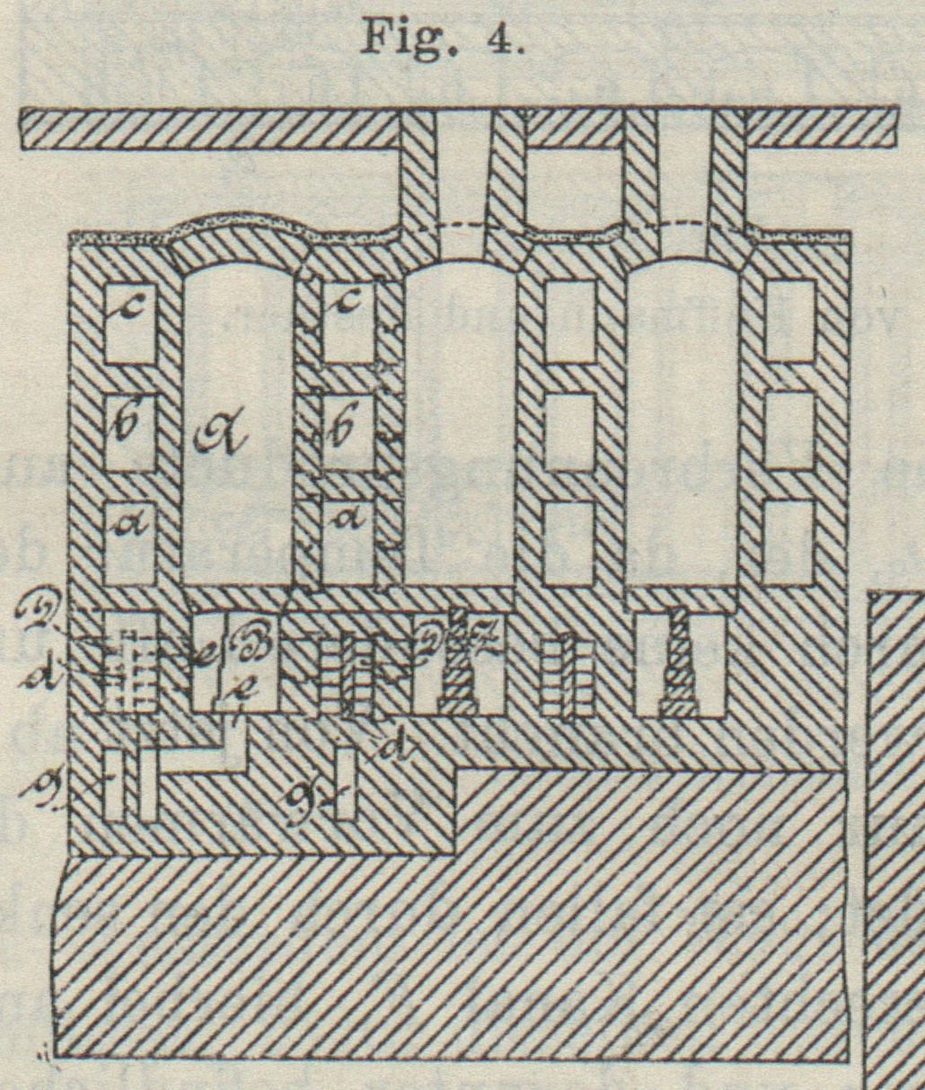 gelangen in den unteren Wandkanal C3 bezieh. C4, welche beide an den Ofenenden mit dem Sohlkanale