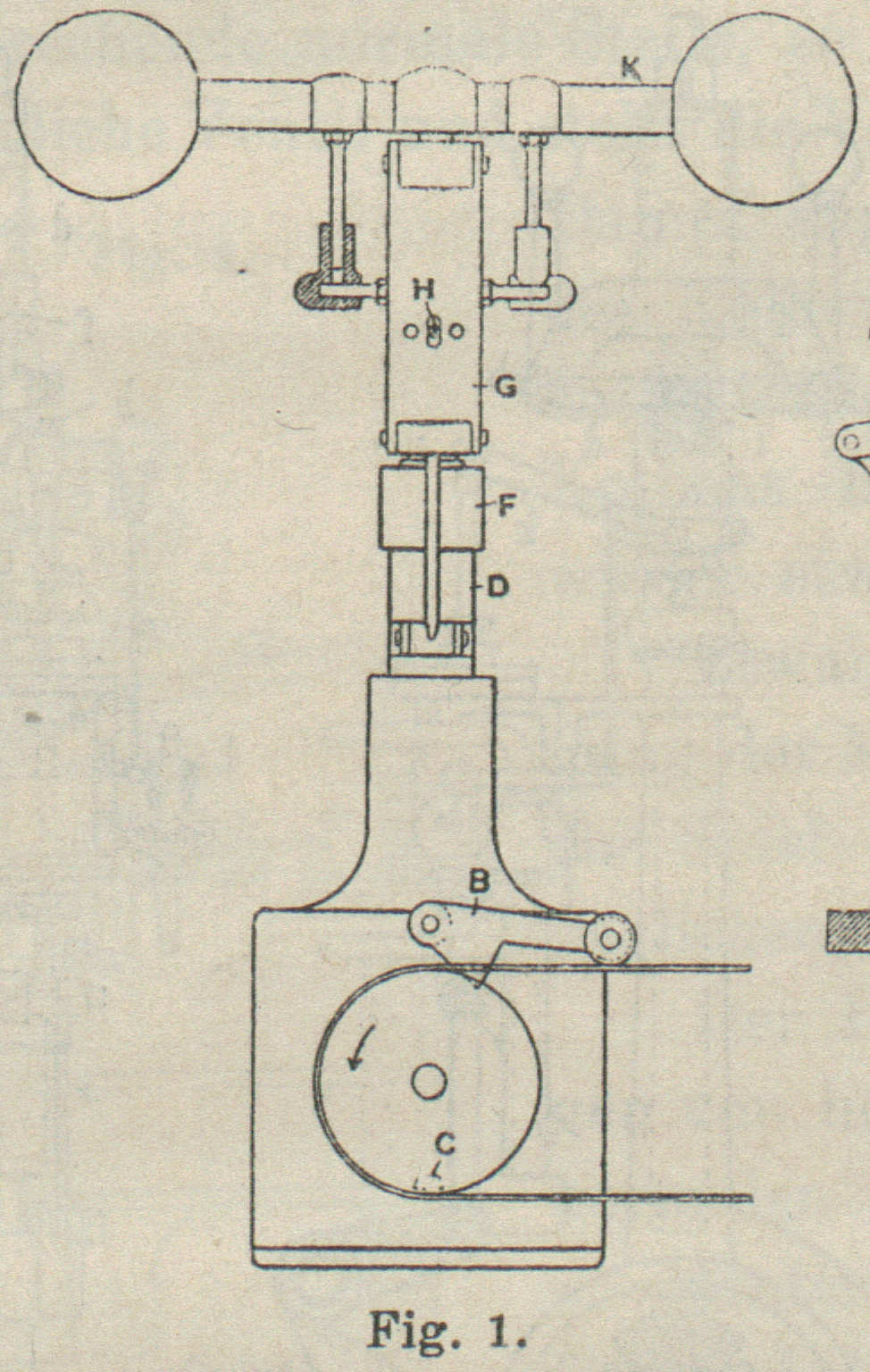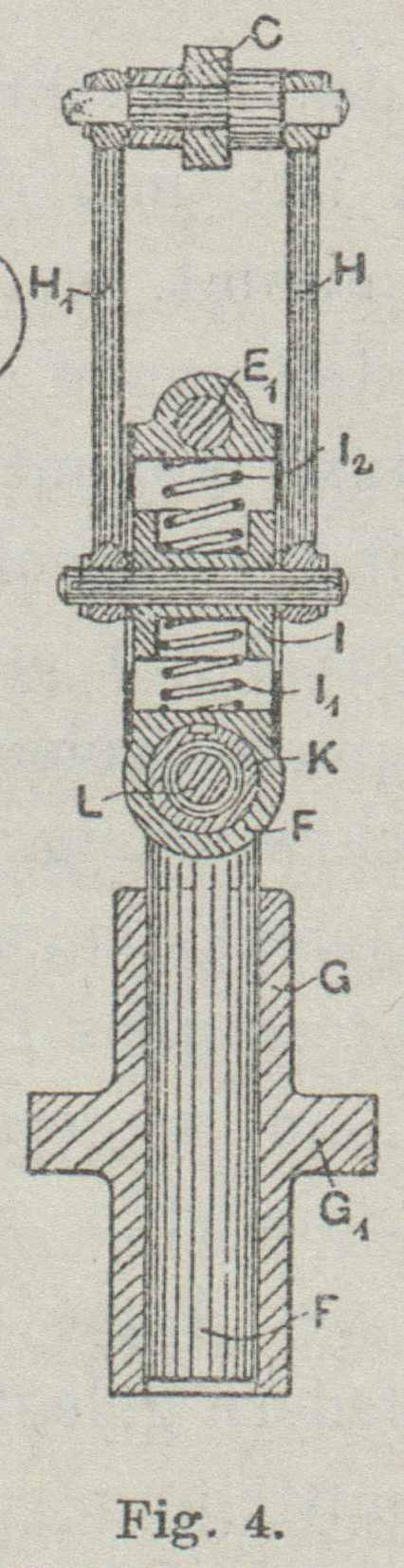 ist; letzterer ist durch Hebel F mit einem Gewicht F1verbunden. Wenn die