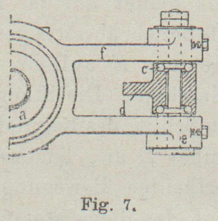 Die zwischen dem Muffe d und der Frictionsscheibe f eingeschaltete Feder c