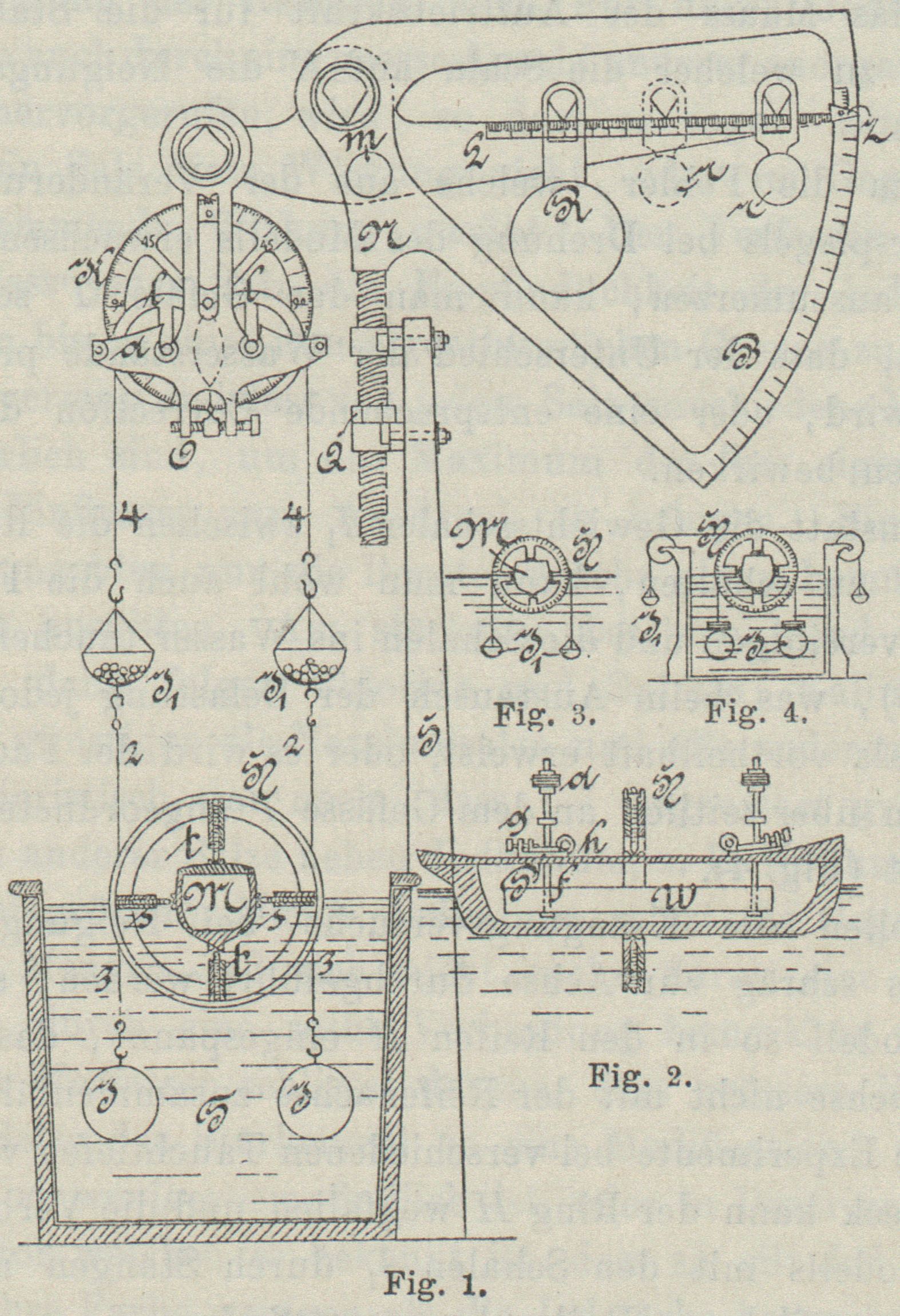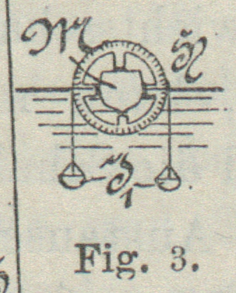 Anstatt die Gewichtsschalen I1 zwischen die Reifen K und H zu schalten, kann man wohl auch die Fäden 2 und 4 vereinigen und die