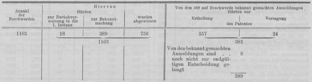seit 1877 : 941), sowie die Zahl der noch im Geschäftsgange befindlichen Anmeldungen