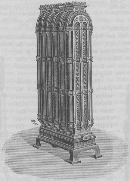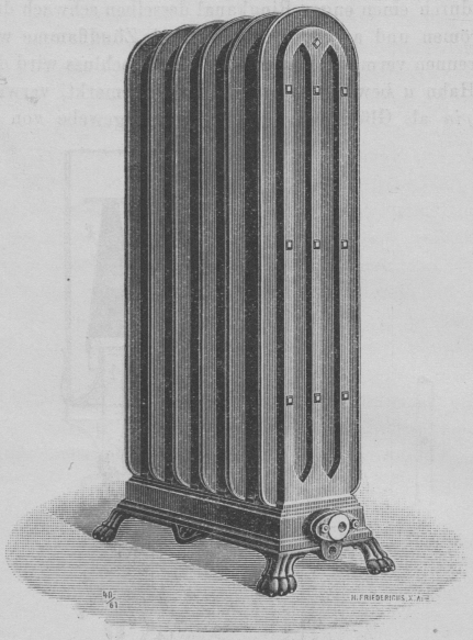 die eigens für diese Erfindung construirten Decorationsheizkörper in verschiedener