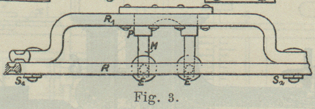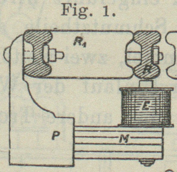 diese jedoch zu berühren; desgleichen muss hinsichtlich der Anbringung von R1 auf R darauf Rücksicht genommen werden, dass der Magnet