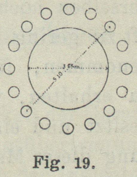 Kreisdurchmesser, alle in 1 m Abstand von einander, etwa 100 m tief, mit 45 cm
