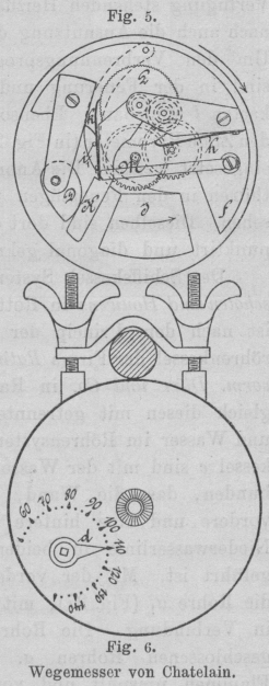 Der durch die Schweizer Patentschrift Nr. 5871 bekannt gewordene Wegemesser von Fritz Gustave Chatelain in Neuchâtel beruht ebenfalls