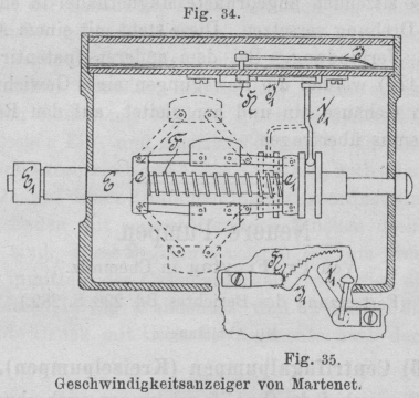 Auf demselben Principe beruht ferner der Geschwindigkeitsanzeiger von Louis Martenet in Serrières (Neuchâtel, Schweiz),
