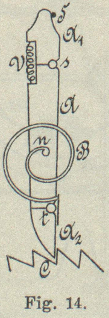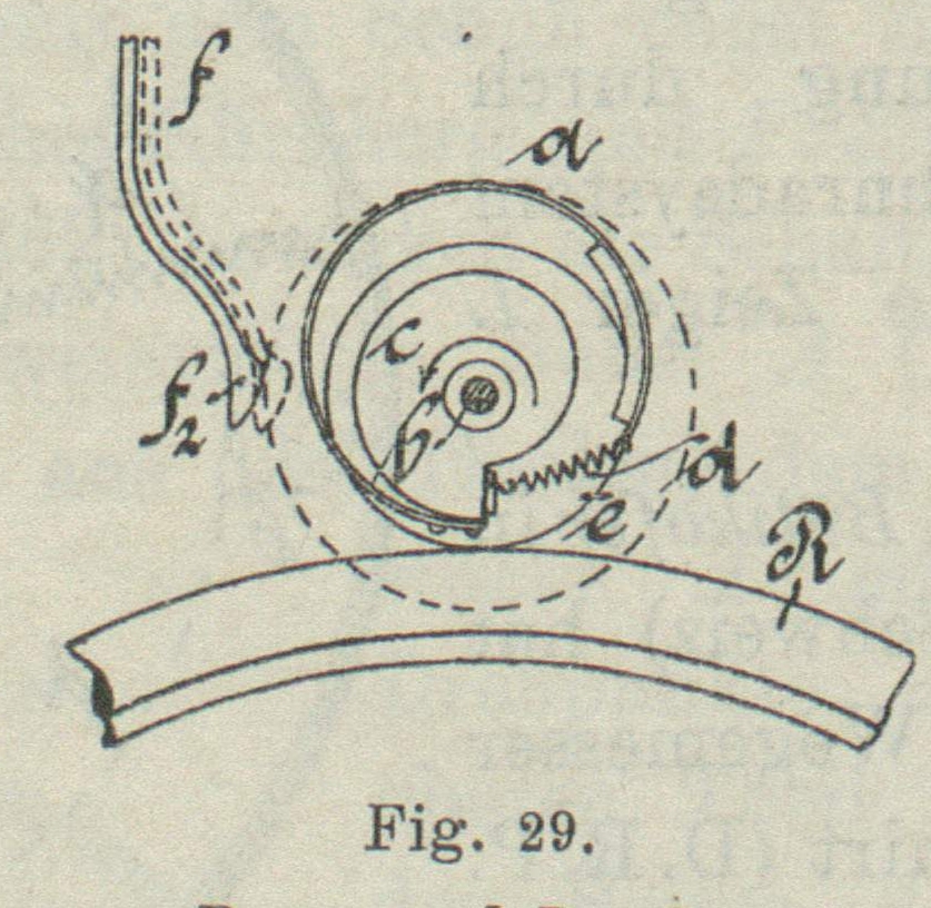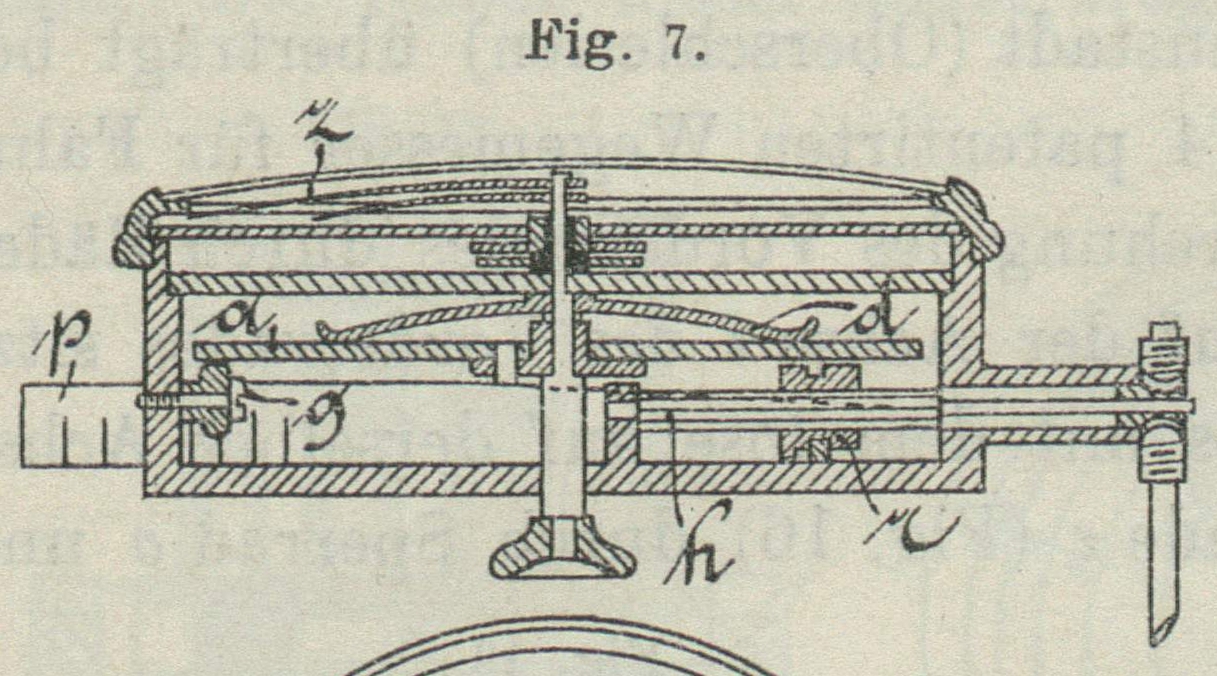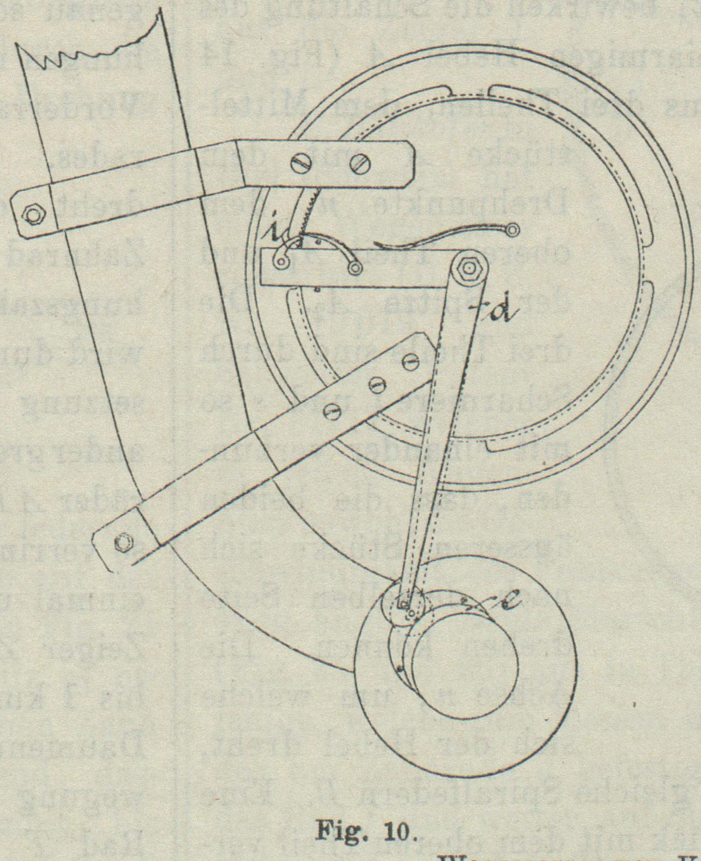 entwickelten Centrifugalkraft vergrössert. An die Feder f wird durch eine zweite Feder o der Stift