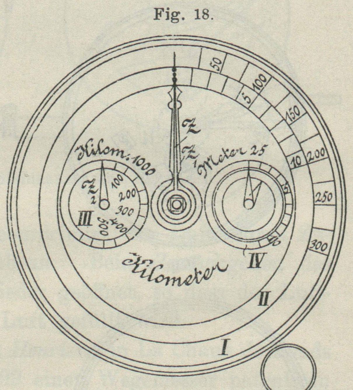 ausrüsten, welches 1000 km beim Umlauf des zugehörigen Zeigers registrirt. So kann
