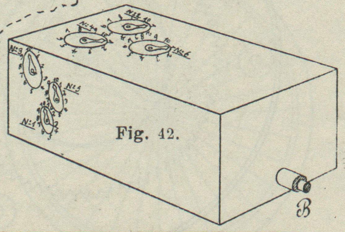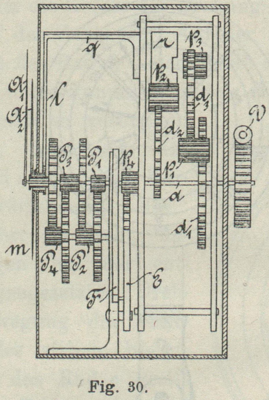 Eingriff mit den Rädern d und f auf den Wellen D, E und F, welche ihrerseits mit einem Zählwerk in bekannter