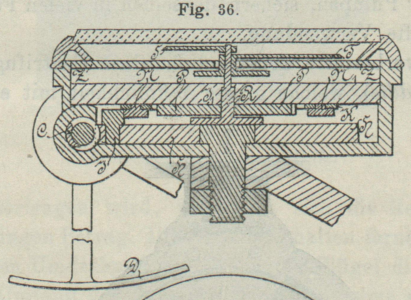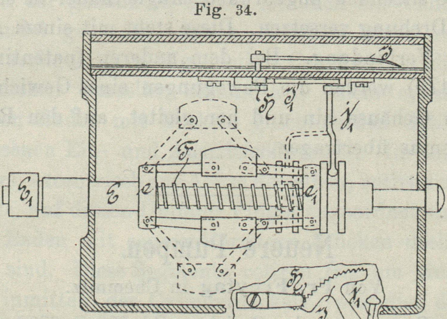 Schweizer Patentschrift Nr. 9028. Auf der Welle E (Fig. 34 und 35), welche von dem