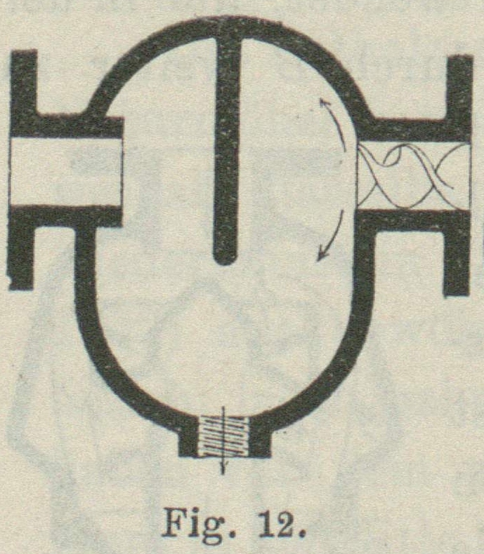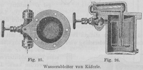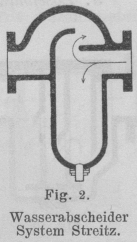 Eine sehr einfache Form zeigen die Wasserabscheider Fig. 2 für wagerechte Leitung von Friedländer und Arenheld (System Streitz).