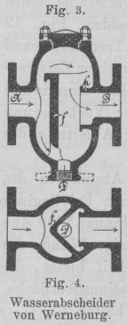 Ein Wasserabscheider für wagerechte Leitung Fig. 3 und 4 ist von A. Werneburg und Co. in Halle a. S. angegeben.