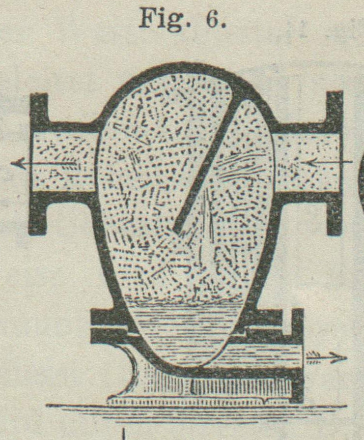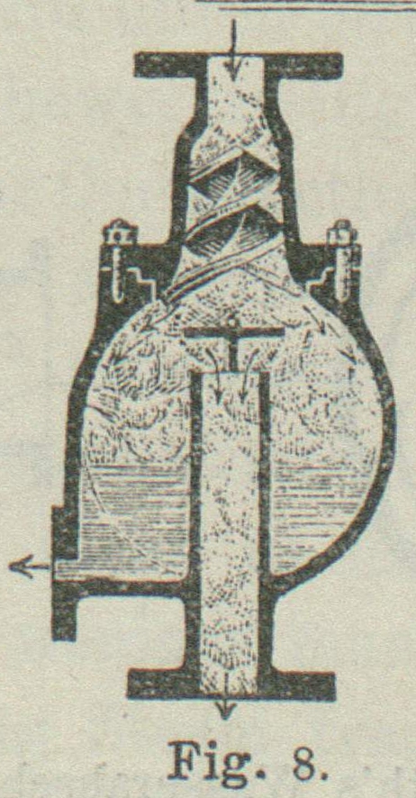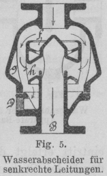 Einen Wasserabscheider für senkrechte Leitungen zeigt Fig. 5. Die Wirkung desselben beruht auf