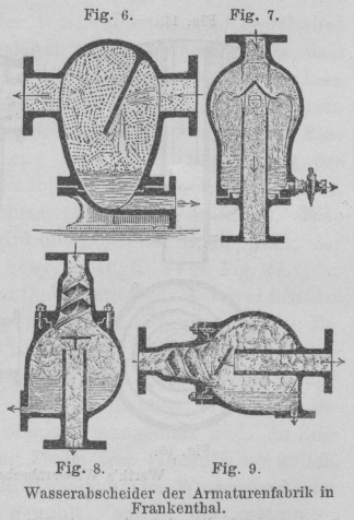 Wasserabscheider für senkrechte und wagerechte Rohrleitungen nach Fig. 6 bis 9 liefert die Armaturenfabrik in Frankenthal,