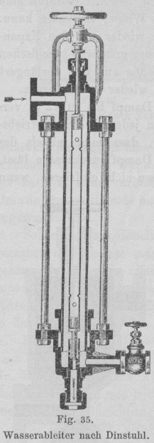Fig. 35 gebaut. Der Dinstuhl'sche Wasserableiter besteht im Wesentlichen aus einem eisernen Mantelrohr, das einerseits in einem