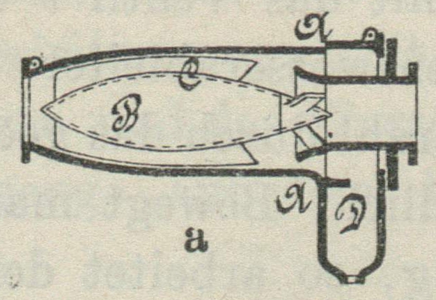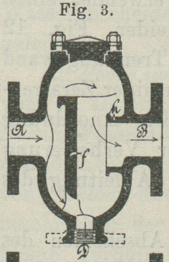Er kann in jede Leitung ohne weiteres eingeschaltet werden. A ist Zuströmung für den Dampf, der sich an der
