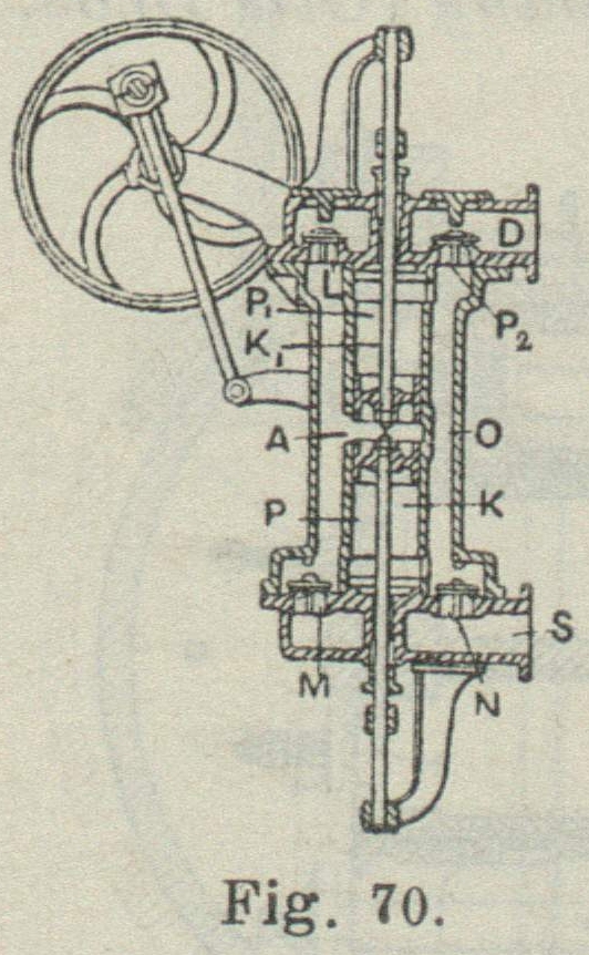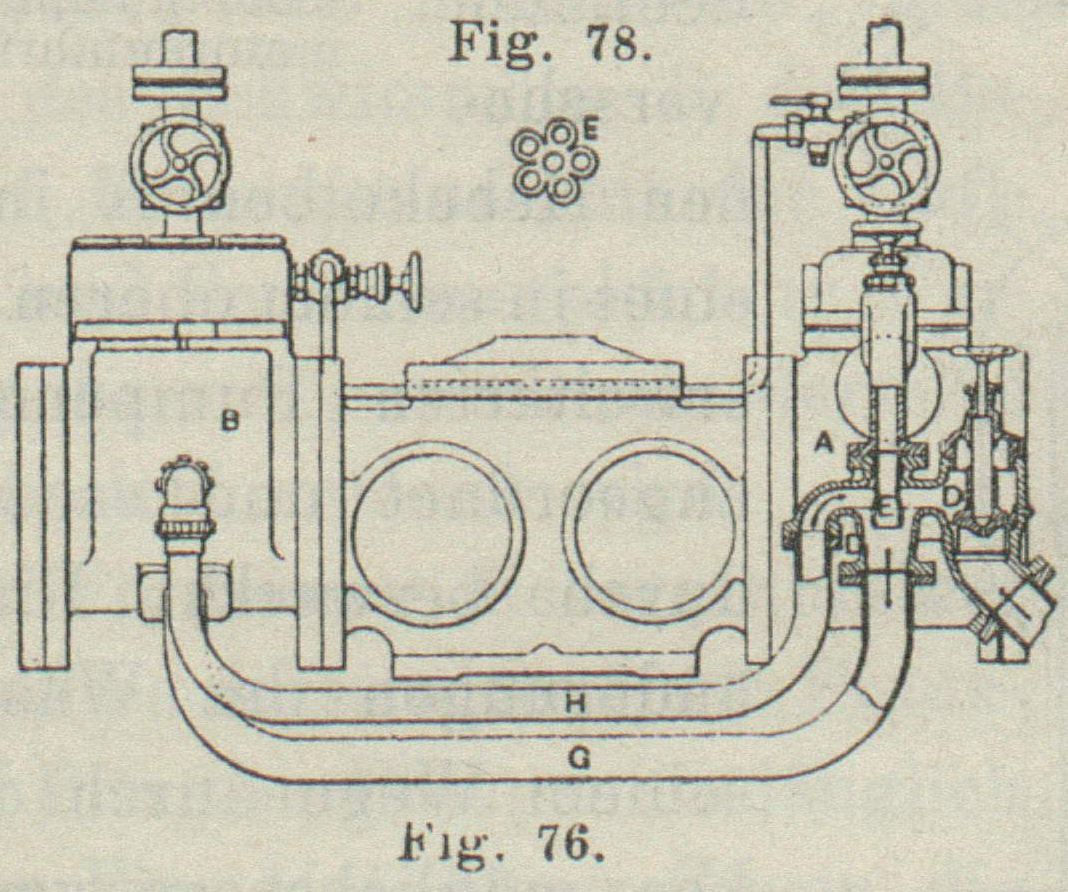 M. Rotten in Berlin, wie Fig. 79 erkennen lässt, zwei oder mehrere Druckventile A, B in Kammern an, die mit einander in Verbindung