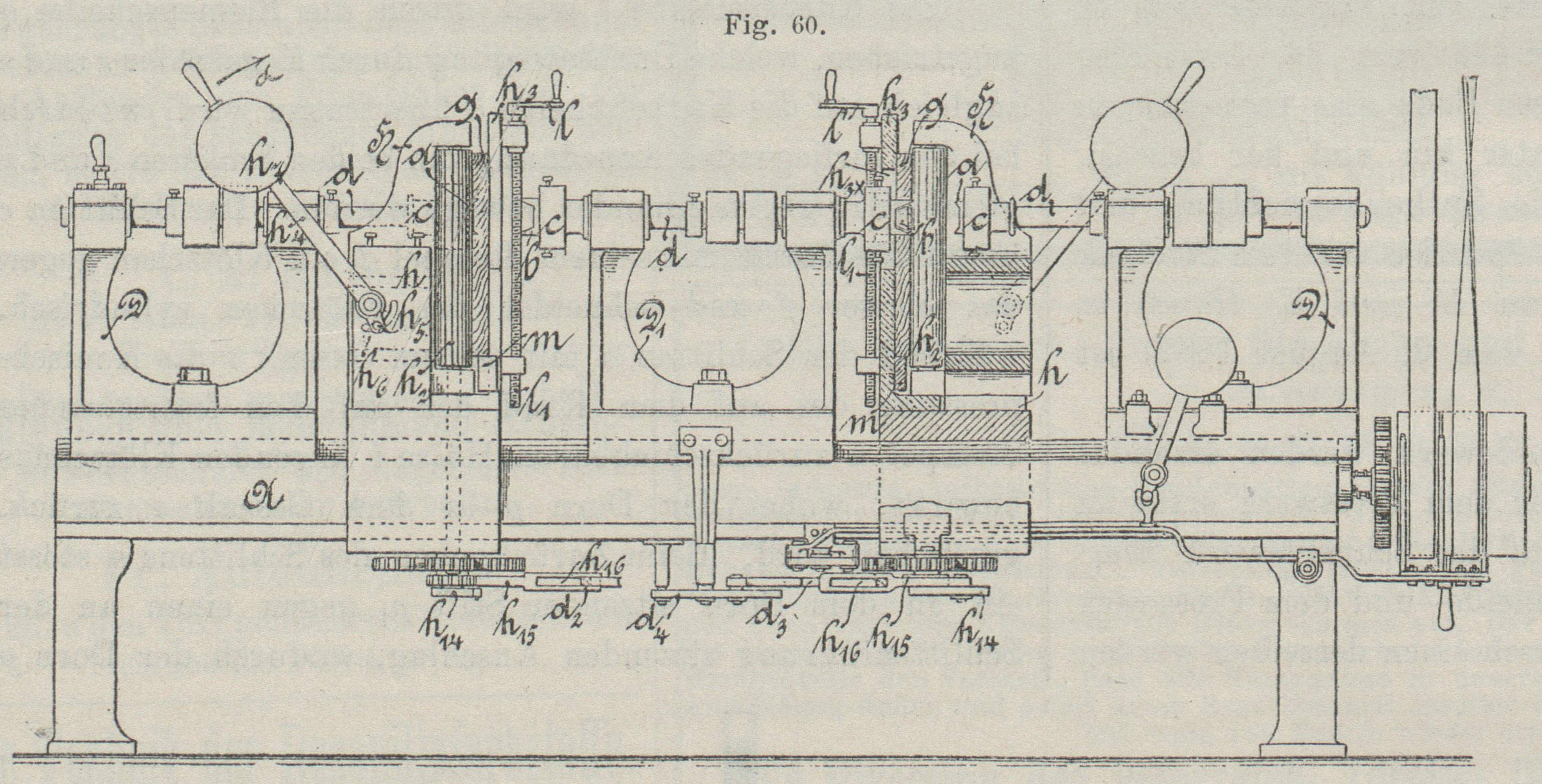 Anordnung die beiden Schlitten c und n gleichzeitig gegen einander bewegt werden. Der