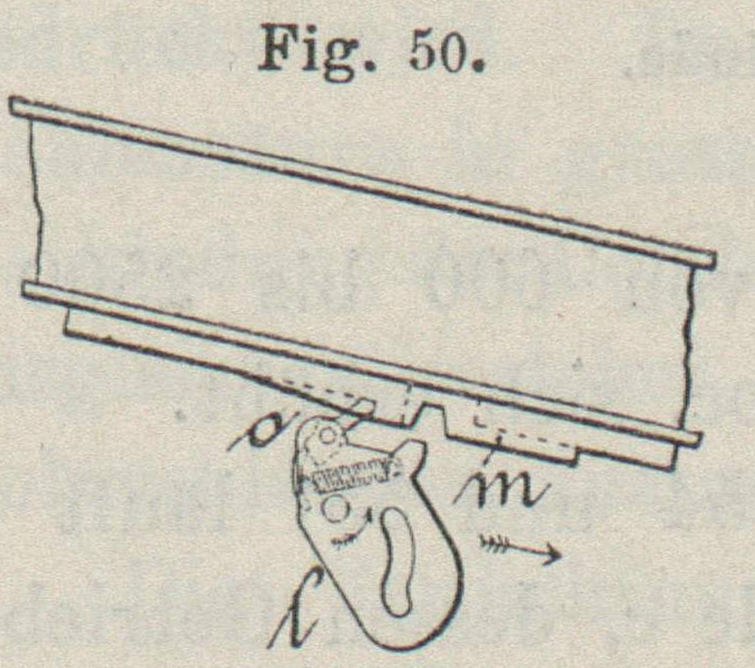 der in gleichen Abständen am Stahlträger angeordneten Aufschlagschienen m, ohne einen weiteren Einfluss auf die Kammplatte l auszuüben. Doch sobald der Wagen die betreffende
