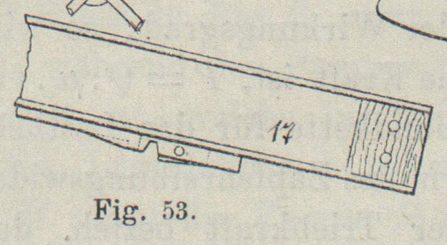Wagenschild abgehoben gedacht. Endlich sind an den letzten Anschlagschienen (Fig. 53) am unteren