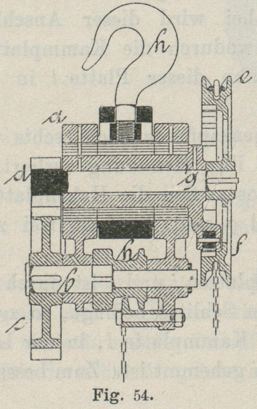 die Antriebwelle unmittelbar angefräst ist. Mit dem Handkettenrade c, in dessen innerem Kranz Sperrzähne vorgesehen sind,