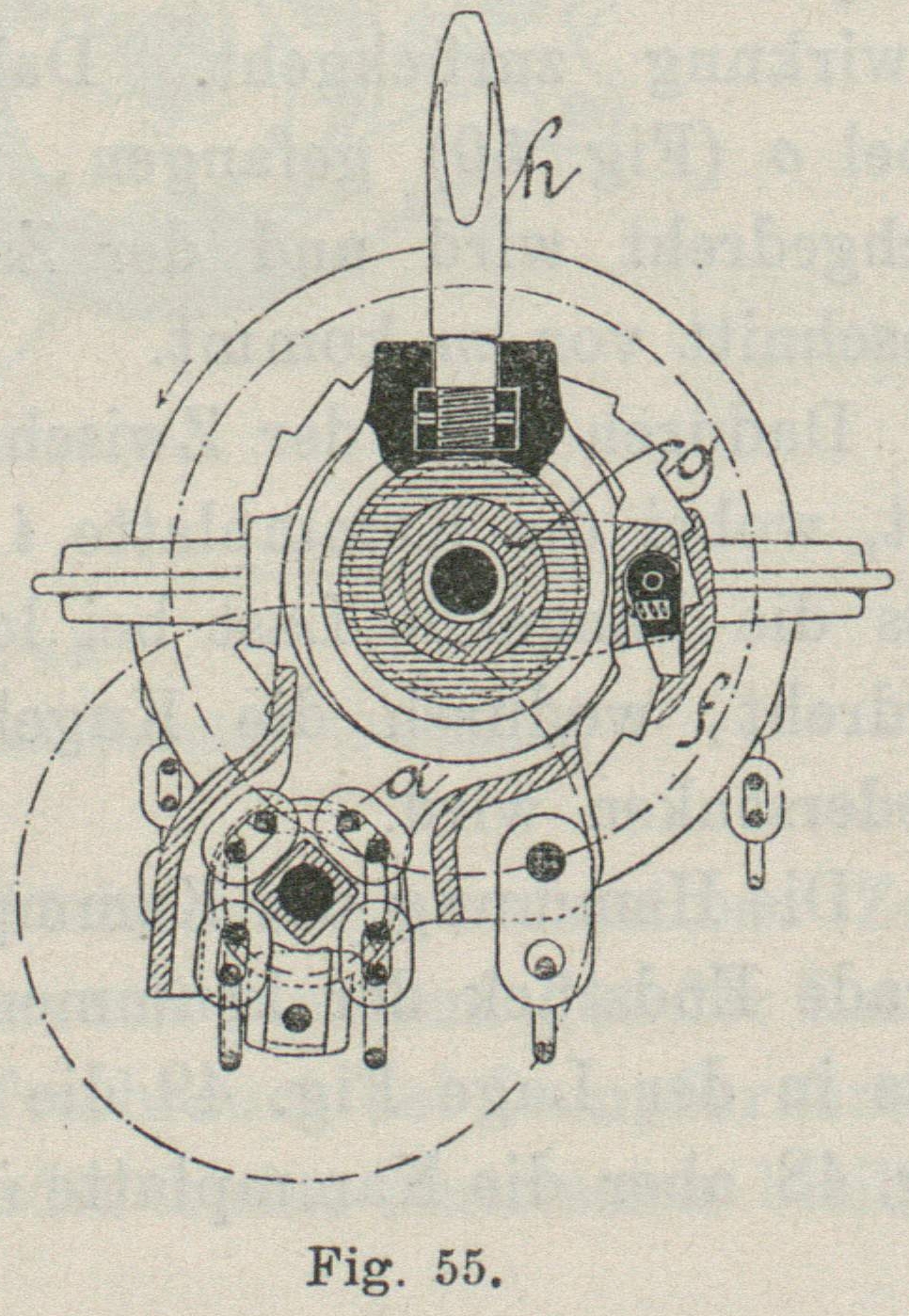 links zu drehen suchen, wobei durch Vermittelung der Hebelklinke f die Lagerbüchse g