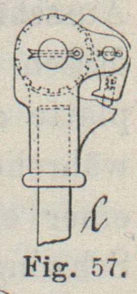 unteren Schlitz der Zapfen c mit der Rollengabel d geht. Um den oberen Rollenzapfen schwingt der