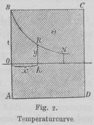 specifischen Wärme, sowie auf dem Temperaturunterschiede t – Θ. Nach Verlauf einer bestimmten Zeit ist