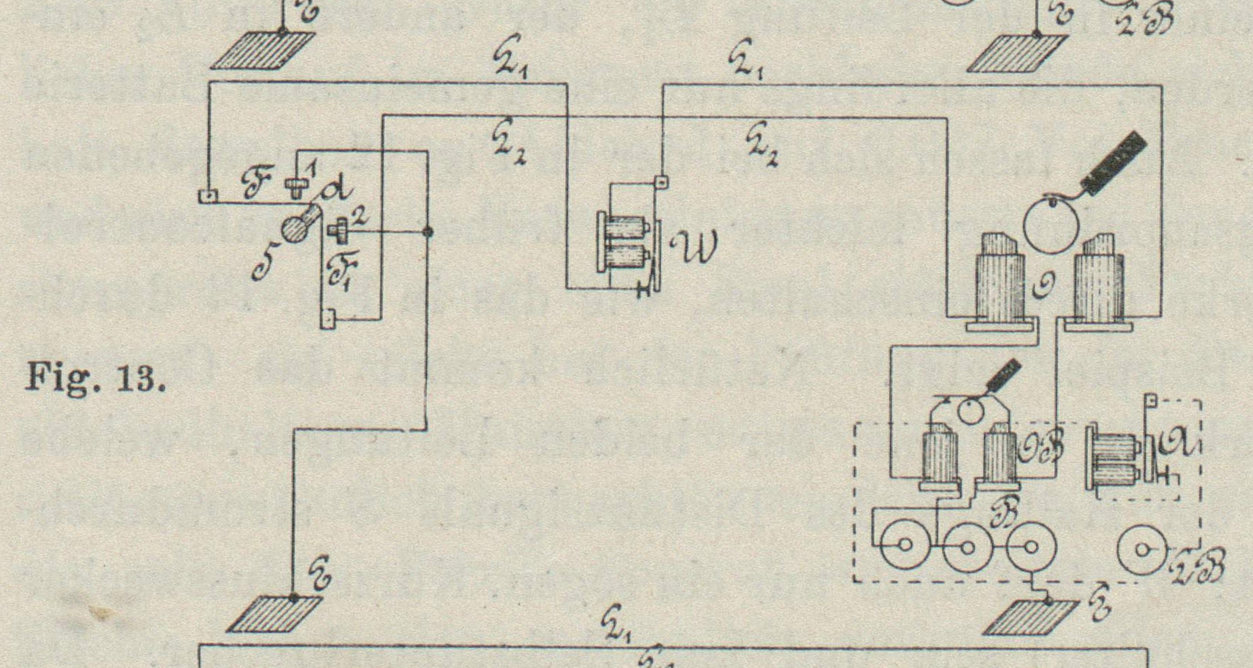 wie OB das Störungszeichen; der Alarmwecker A läutet, das Controlklingelwerk W schweigt. Ganz unschwer liessen sich bei der